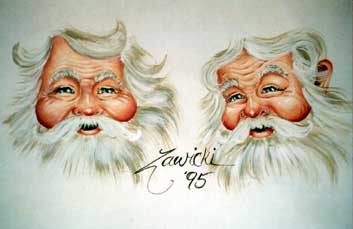 Five pages of text illustrate Santa face painting, and face do's and dont's. Tips and color illustrations on eye variations, noses and two full faces to create heirloom St. Nicks.