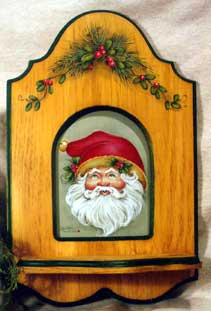 A 3-piece unit, with wood piece insert. The Santa face, that was done on the insert, can be used on a variety of different pieces. You can also use the berry & pine frame decorations for other things. Paint a 2nd insert with another subject to use it all year round.